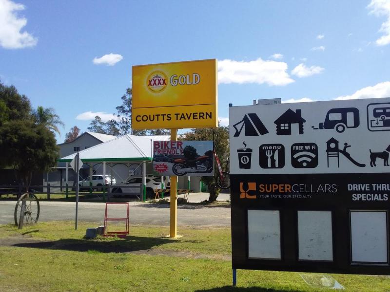 Situated in the heart of the beautiful little town of Coutts Crossing is the great friendly little pub The Coutts Crossing Tavern which boasts beautiful gardens and peaceful beer gardens with 7 beers on tap and alot of your favourite's in stubbies and can's with a wide range of Spirits and Wines also. A modern Bistro with great food and regular specials with its own dining room. Friendly staff to greet you on arrival and make your visit one to remember. Free camping area available and 18 rooms for accommodation, two of which are family/disabled rooms with one double bed and one single bed, the rest are all with king single beds. Bar fridge,Tv,Jug,Toaster,Air con,Linen and Free Wifi. Rates are $65 per night with $15 additional fee for extra person. Raffles held by different local sporting groups on each friday night with a jackpot draw following. Regular entertainment provided free for all to enjoy with a courtesy bus available to get you there or home safe (please make prior arrangements if the pick up/drop off is out of a 5k radius for larger groups for staff reasons :) ) Sponsors of the local Fishing Club and other sporting groups. There is a Facebook page available for you to join and see some of the fun activities, bands, photo's etc that are happening regularly. Two pool tables available, regular Card games, keno and Tab outlet with multiple screens to watch the races and view odds and results aswell as all the sporting action, Footy, Cricket, Tennis, Motorsport etc. Seven pokie machines for those who like a gamble. Free WiFi available. We also hold an annual Show and Shine with proceeds going to the local Fire Brigades. A monster Ham Wheel Raffle held every year before Christmas with dozens of Hams on offer with Music throughout the afternoon held by the local Sporting Club who raise money for alot of events and clubs through the year. A popular venue for regular Market days, keep and eye out for these dates.