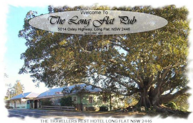 The Long Flat Pub has a focus on great service and good old fashioned country hospitality. It is one of Australia's original country pubs and is nestled on the banks of the beautiful Hastings River on the Oxley Highway in the picturesque village of Long Flat just 50km from Port Macquarie and 30km from Wauchope. The pub is along the route of the best motorcycle ride in Australia