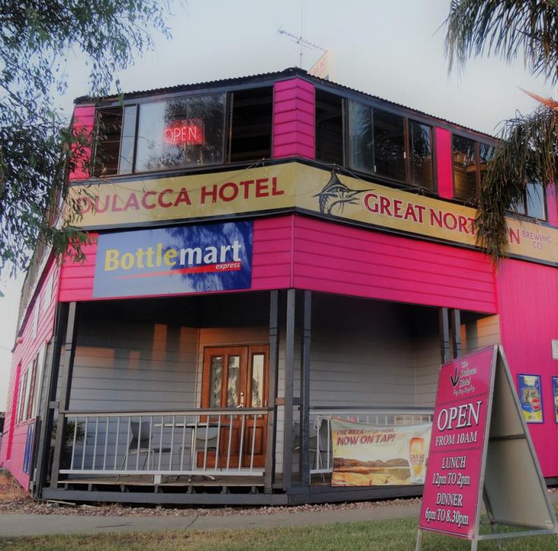 Commercial hotel with bar, bistro, bottle-shop and accommodation. Open every day from 10am to late. Lunch served from 12pm to 2pm, dinner from 6pm to 8:30pm. Takeaways available.