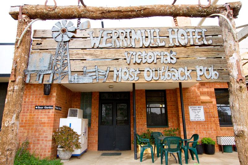 Located 70km from Mildura in Victoria, 75km from Wentworth in New South Wales and 90km from Renmark in South Australia. Nicely situated between the Murray River and the Sunset National Park. Close to Cullulleraine where all the water sports take place. A family friendly hotel, with good meals, comfortable accommodation, a good selection of beverages and the pub is warm in winter and cool in summer. A great meeting place for dirt bike riders coming through the park, a nice drive for lunch for motor enthusiasts, out one road and back another or you may like to visit the Millewa Pioneer Park at Meringur or the Werrimull Catholic church. Booking are recommended at all times.