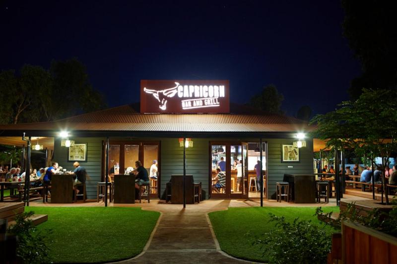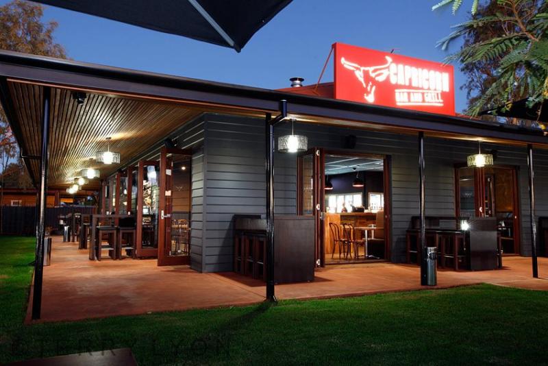 The Capricorn Bar & Grill is located on the same site as the Capricorn Village hotel and the 24 hour Outback Travel Centre fuel and convenience store.