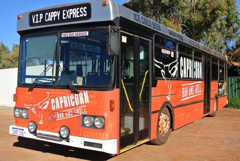 Capricorn Bar & Grill wants to take the hassle out of getting to our venue, so has the free "Cappy Xpress" bus that runs to and from Newman. Simply call for group bookings on 08 9175 1535.